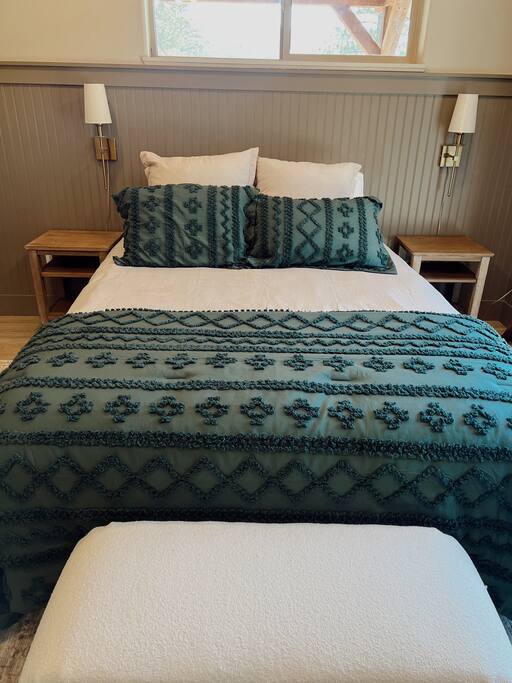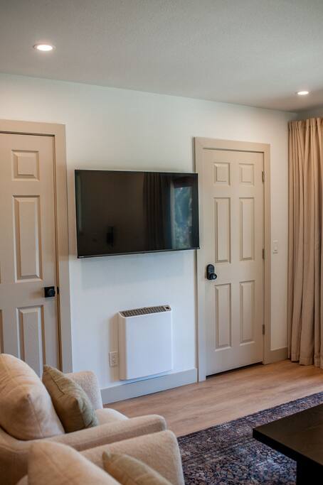 On the upper level there is one bedroom with a queen size bed and one bedroom with a king size bed. Both bedrooms have their own mini split system so you can control the temperatures in your room independently! All beds have memory foam mattresses and high-quality linens to ensure a great nights sleep!