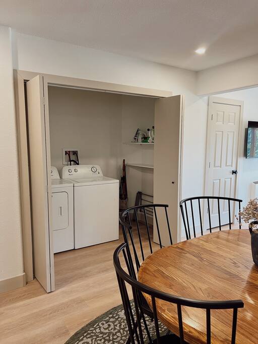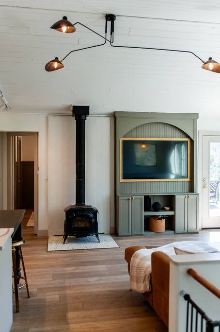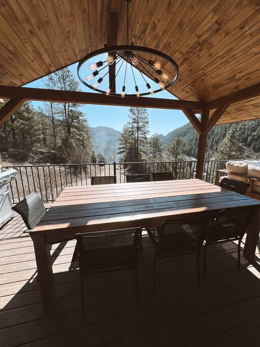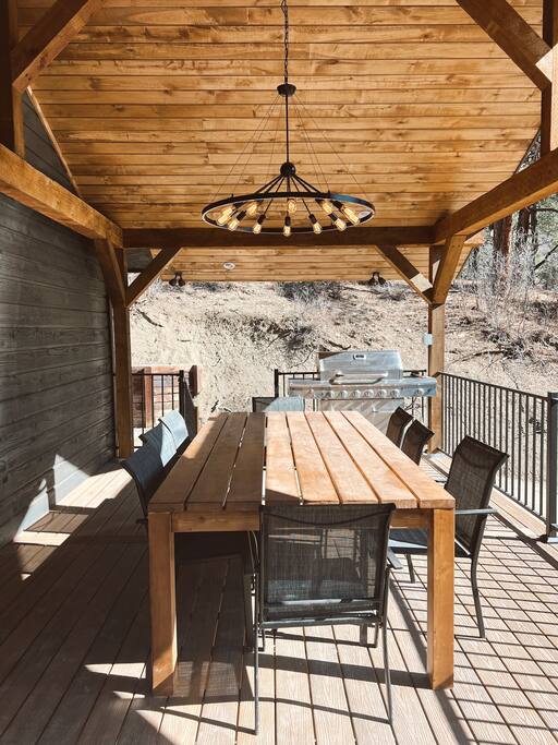 Our outdoor space offers a great experience for your stay! We have a large propane grill and an oversized outdoor dining table that seats 8 and is well-lit under the covered patio. Enjoy coffee on the deck with a mountain view or relax and unwind by the fire-pit on the large outdoor couch!