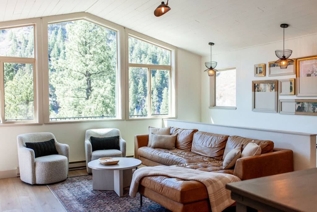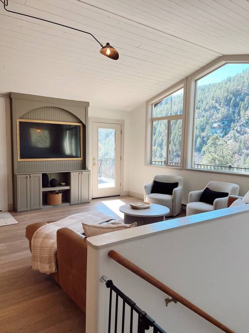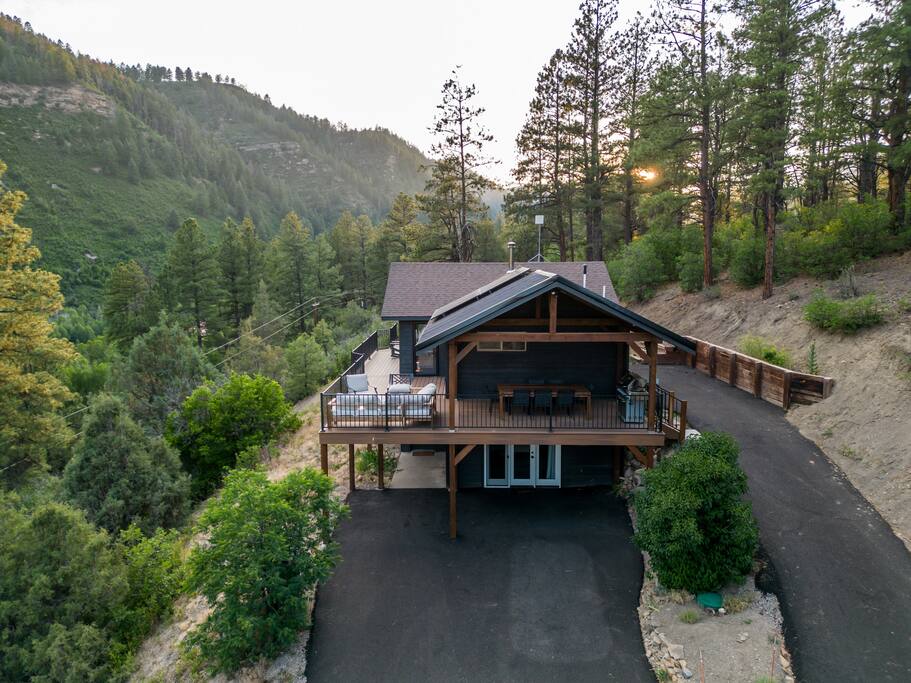 Welcome to the Lightner Creek Cabin! Our light and airy home offers a breathtaking view just minutes from downtown Durango. Expansive windows fill the space with natural light, highlighting the open-concept design. Enjoy a cozy living room, fully equipped kitchen, and private balcony. Downstairs, you'll find a stylish wet bar and separate living space—perfect for entertaining or relaxing after a day of exploring.